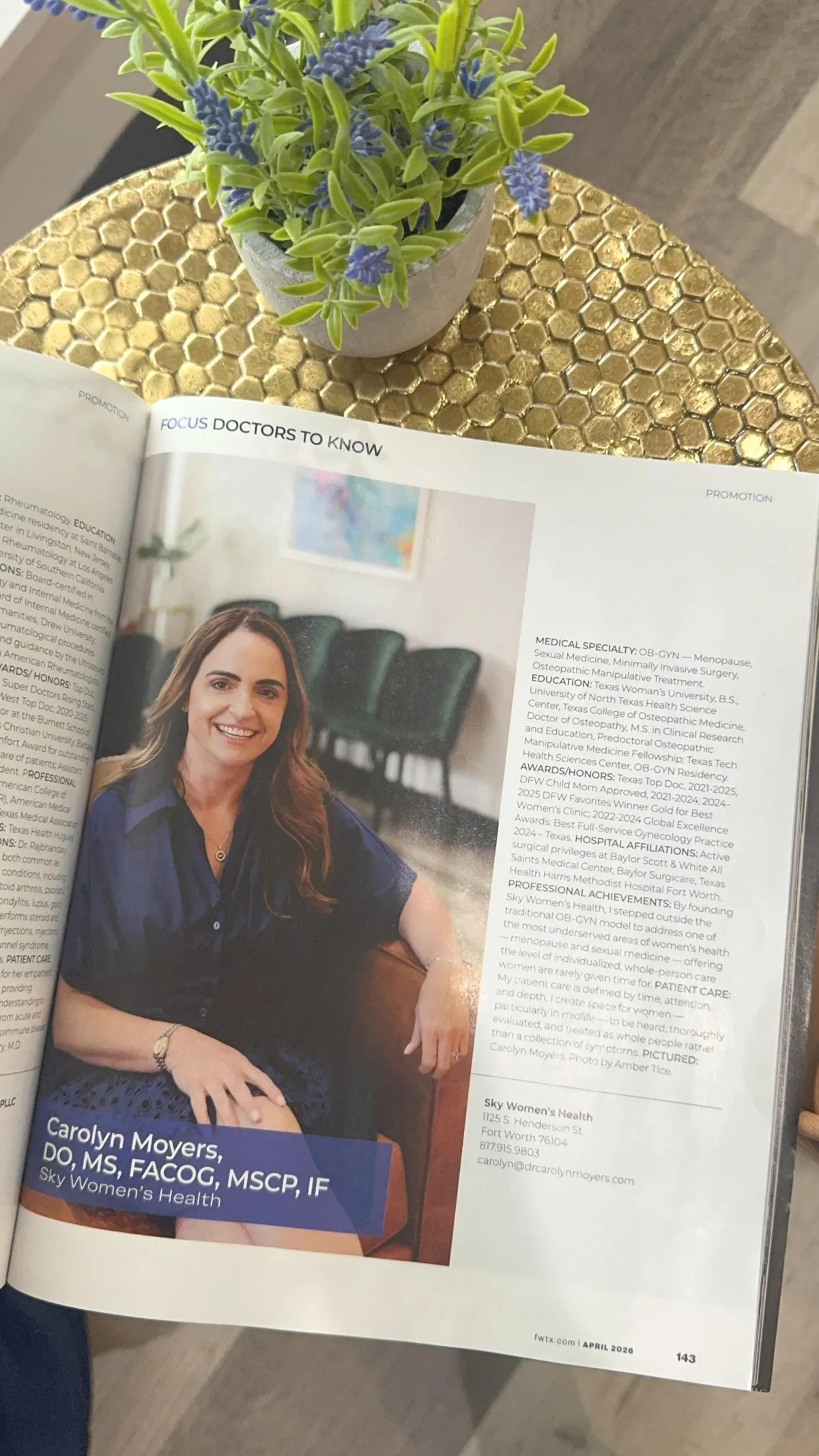 Dr. Carolyn Moyers, recognized as one of Fort Worth Magazine's Top Doctors, offers compassionate, expert care tailored to women's health needs in midlife